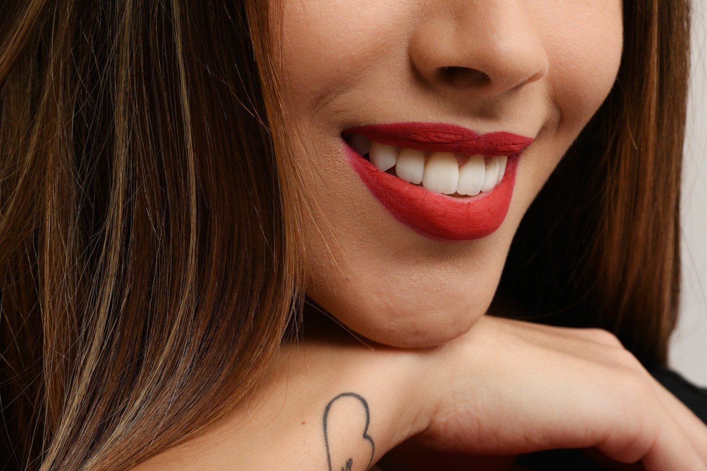 - dinți albi, dar nu prea albi, evitând aspectul de dinți falși.